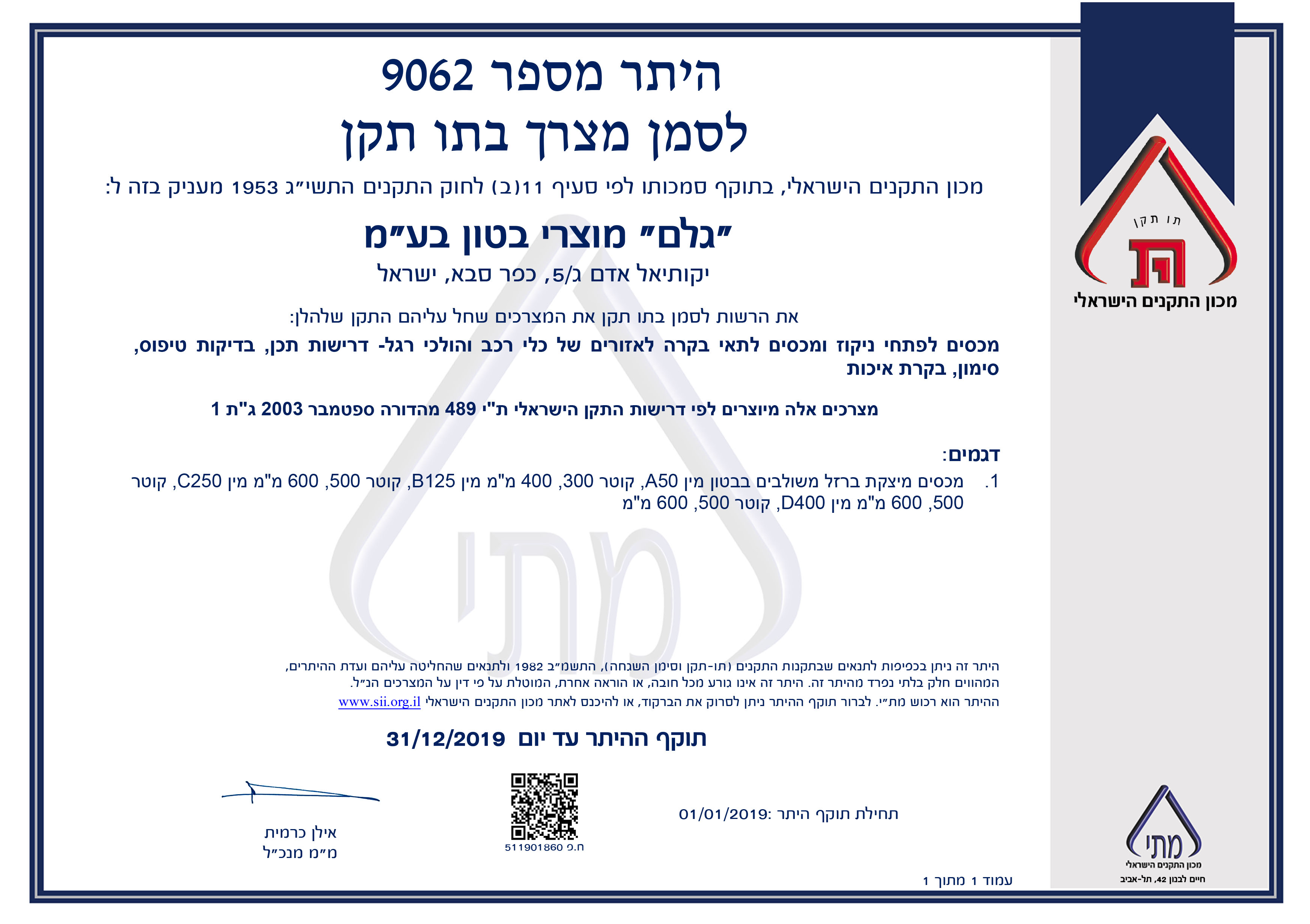 דגם מכלל מוצרינו נבדקים תקופתית, וכל תוי התקן מאושרים ע"י מכון התקנים הישראלי.