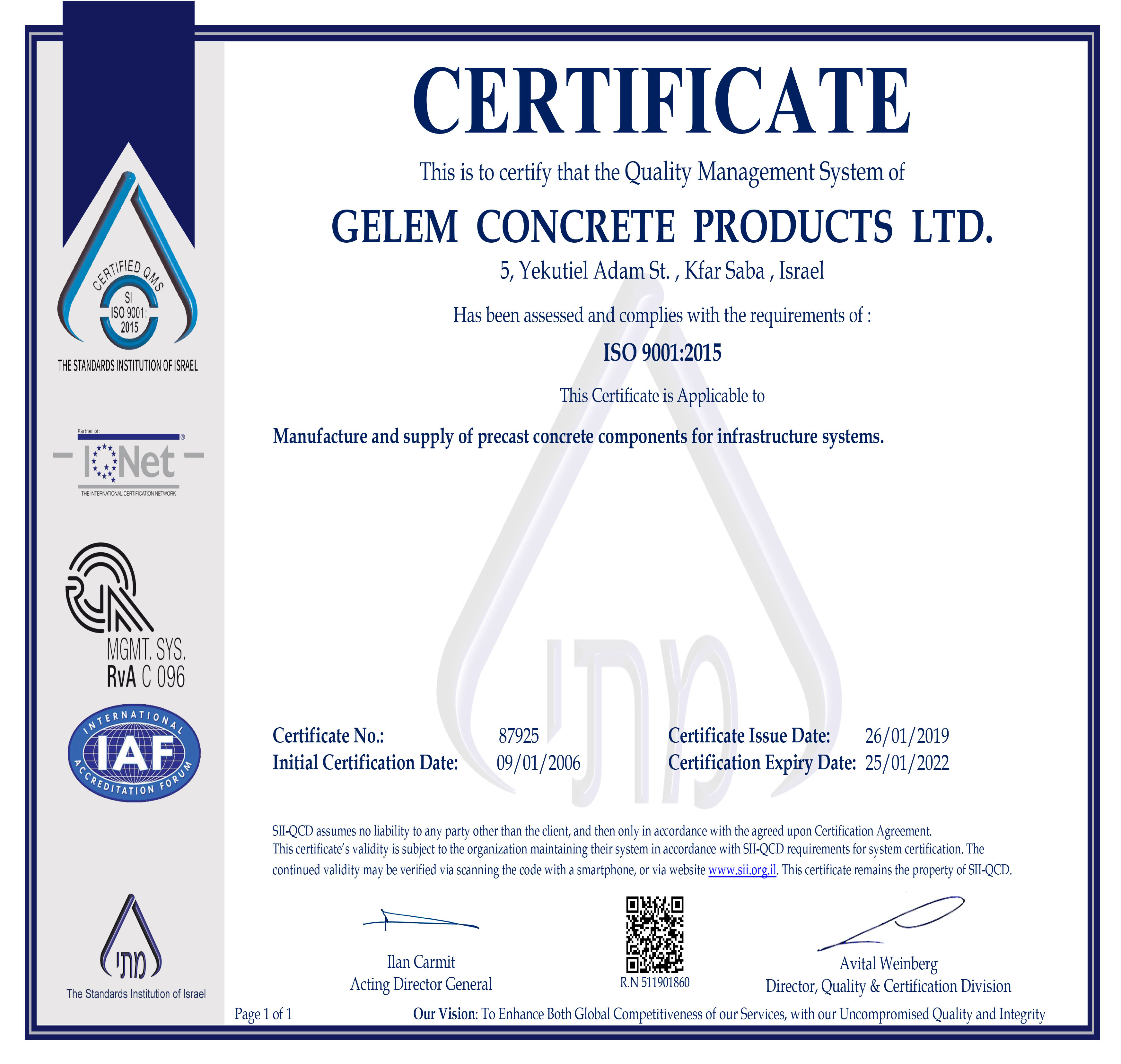 כמו כן אנחנו עובדים עם מערכת הנהלת איכות המתקדמת ISO:9001.